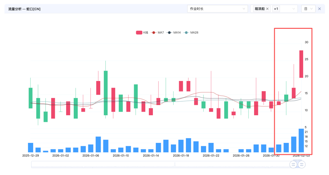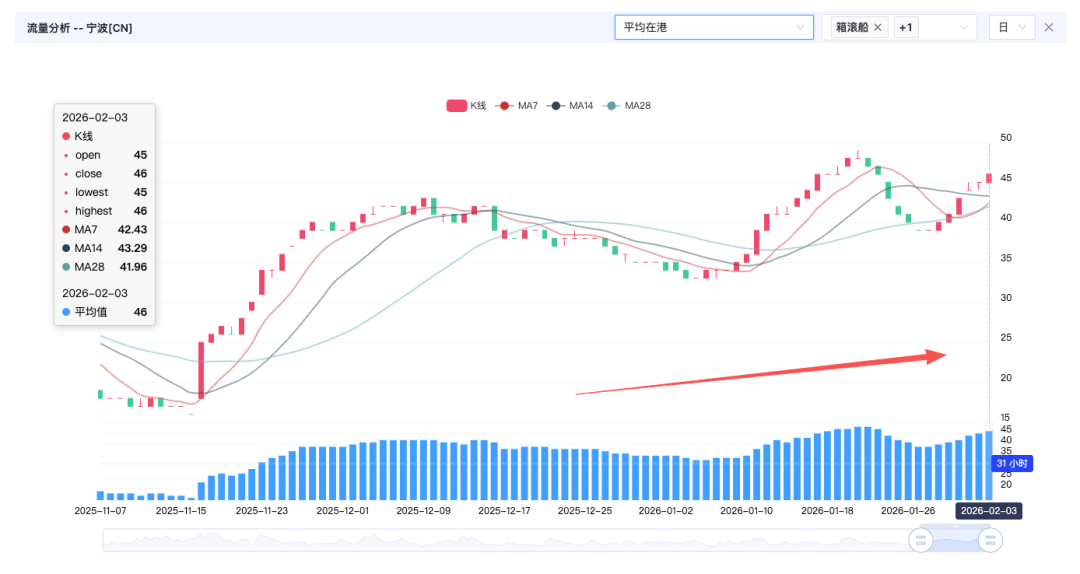 Ningbo Port is also currently operating at full capacity, implementing a fully appointment-based port entry system, with the average berthing waiting time remaining at a high level.
